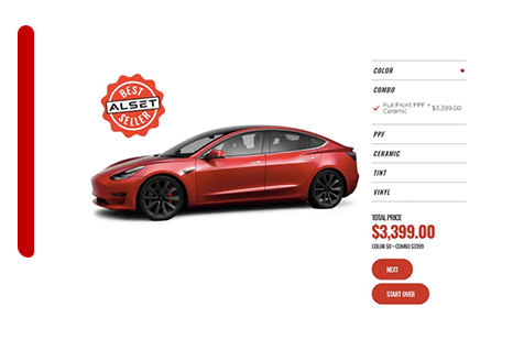 Using ALSET Auto’s Visual Protection Configurator allows you to get instant pricing for all of our services. No pricing gimmicks, hard selling or up-charges.